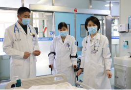 哈医大二院重症医学科主任韩艺主任医师在(右)与当地医生共同查房