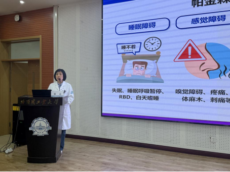 哈工大医院院长于洋致辞后,帕金森防治科普讲座及多学科专家公益义诊活动正式开始。哈医大二院神经内科吴云教授带来《“机不可失”--帕金森病诊疗需趁早》专题讲座,用通俗易懂的语言、生动鲜活的案例,系统讲解帕金森病的早期识别、科学诊疗与日常康复要点,帮助师生及离退休教职工树立早筛查、早诊断、早治疗的健康理念。