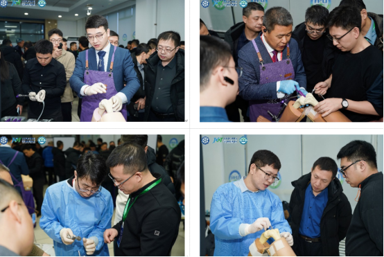 巡讲期间的WORKSHOP环节中,来自全国的专家团队们领衔开展高阶技术带教,涵盖活动平台单髁、固定平台单髁、OWHTO联合人工骨植入及OWHTO融合PRP软骨修复等多种标准化术式演示,通过“理论要点讲解+手术器械假骨实操”教学模式,手把手拆解关键步骤,专家现场示范并实时互动,学员全程参与操作细节探讨,反复确认每个技术节点的认知与掌握,确保技术要点内化于心、外化于行,真正实现“知行合一”。
