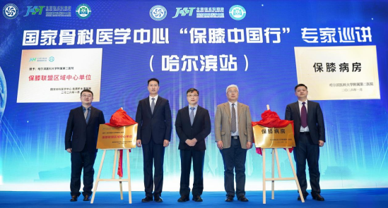 会上,黄野教授与王广志副院长共同揭幕“保膝联盟区域中心单位”牌匾;吕松岑教授与王新涛教授同步为“保膝病房”授牌。这一举措不仅标志着哈医大二院正式接入国家级保膝协作网络,更以“精准化诊疗+全周期管理”为支点,为东北患者构建起从预防、干预到康复的系统性解决方案。