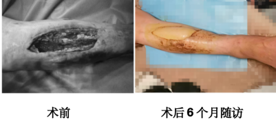 一场意外,使小腿骨折术后感染导致大面积皮肤软组织缺损,骨质外露,当半生时光都被反复的疼痛与煎熬裹挟,患者王先生几乎放弃了康复的希望。近日,哈医大二院骨外科一病房(烧伤与创面修复病区)赵震宇教授团队凭借精湛的超薄穿支游离嵌合皮瓣技术,成功攻克这一疑难创面,为他彻底抹去半生痛苦,重燃生活曙光。