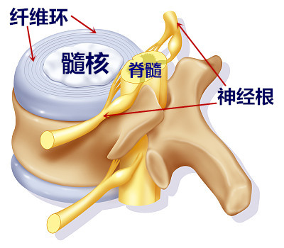 髓核:髓核(蛋黄)位于椎间盘的中央部,是一个含水量很多的弹性胶状物质,可以减少运动时头部与脊髓的震荡。