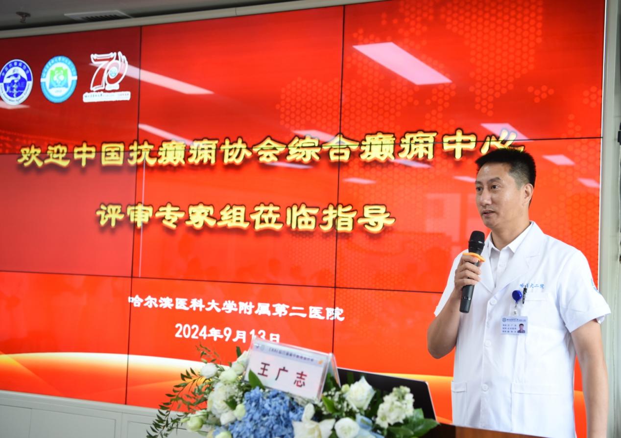 会议由哈尔滨医科大学附属第二医院王广志副院长主持,他以热情洋溢的开场拉开了评审活动的序幕。他表示中国抗癫痫协会综合癫痫中心评审意义非凡,标志着我院癫痫中心在规范化建设方面迈出了坚实的一步。医院将以此次评审为契机,进一步提升癫痫的诊疗水平,并进一步加强与国内外高水平癫痫中心的交流与合作,为持续推动我省抗癫痫事业做出贡献。