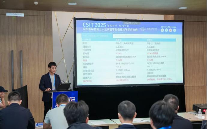 在大会核心发言环节,贾广生副主任技师以“下肢动脉CTA联合下肢静脉CTV检查在下肢外伤患者中的应用” 为主题展开深入阐述。他结合自身多年临床工作经验,详细分享了新型影像设备操作中的关键要点,深入分析了影像质量的核心影响因素,并重点讲解了如何通过优化参数设置提升诊断准确性,为在场参会人员提供了极具价值的实践参考与理论指导。