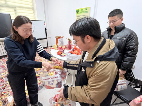 活动前期,学院结合深秋备考期间的营养补充与能量供给需求,精心筹备了200份加油包。每份加油包内不仅包含新鲜饱满的橙子、苹果等应季水果,寓意“心想事成、平安上岸”,还搭配了祝福卡片、巧克力、能量棒等便携零食,方便学子在高强度复习间隙快速补充能量,以更饱满的状态投入备考。