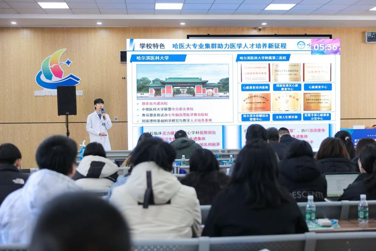 成长赛道高教本科组金奖获得者、哈尔滨医科大学第二临床医学院2023级临床医学专业学子宋洪飞,以“哈医临床逐光梦,白衣执甲守初心—立志成为一名严谨专业的寒地心内科医生”为参赛主题,凭借逻辑严谨、贴合国情、兼具医者情怀与落地可行性的职业规划方案,从全省数万参赛选手中脱颖而出,获得评委专家的高度认可。
