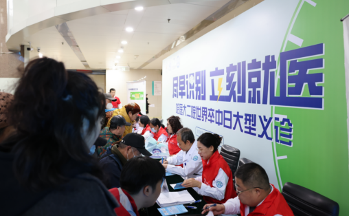 同时红手环行动志愿者也参与到此次义诊中,“红手环行动”与世界卒中日活动已联合开展六年,志愿者们积极宣讲普及法律、安全、急救知识,倡导患者保持清淡饮食、适度运动、稳定情绪等健康生活习惯,宣传“中风120”口诀与“BEFAST”口诀。