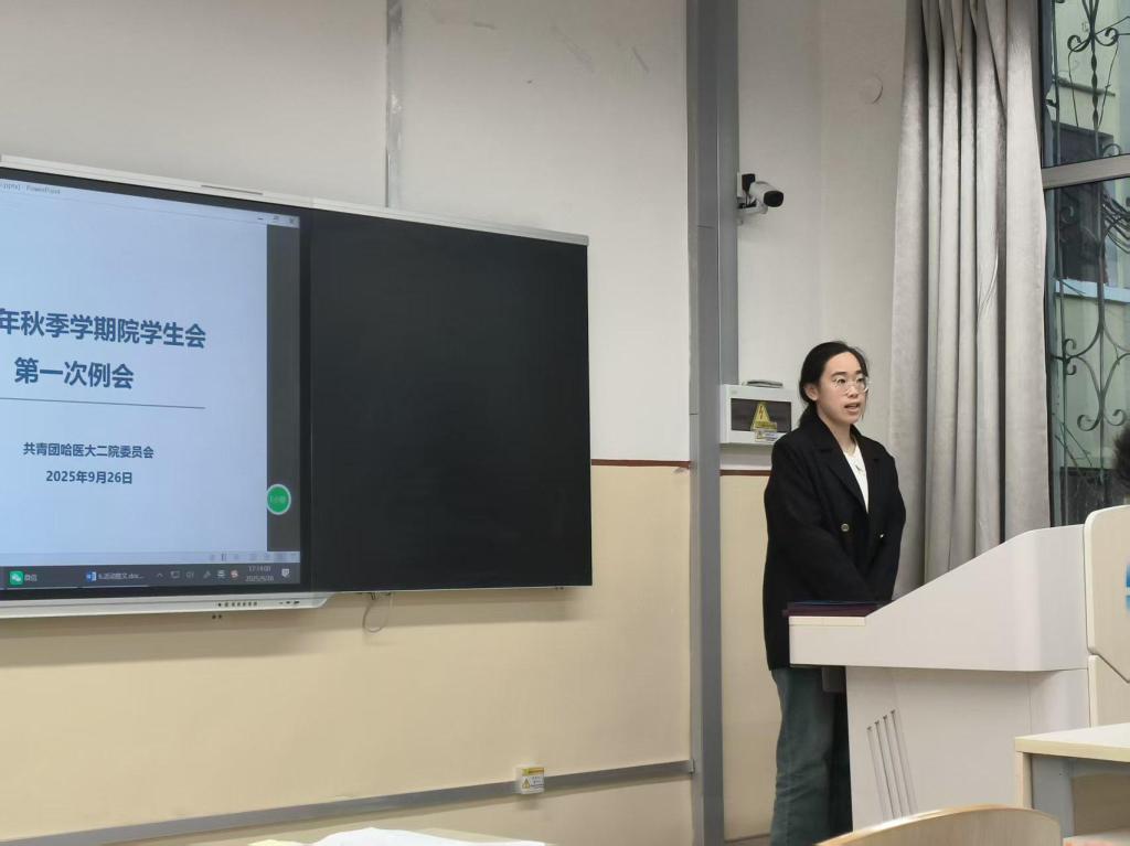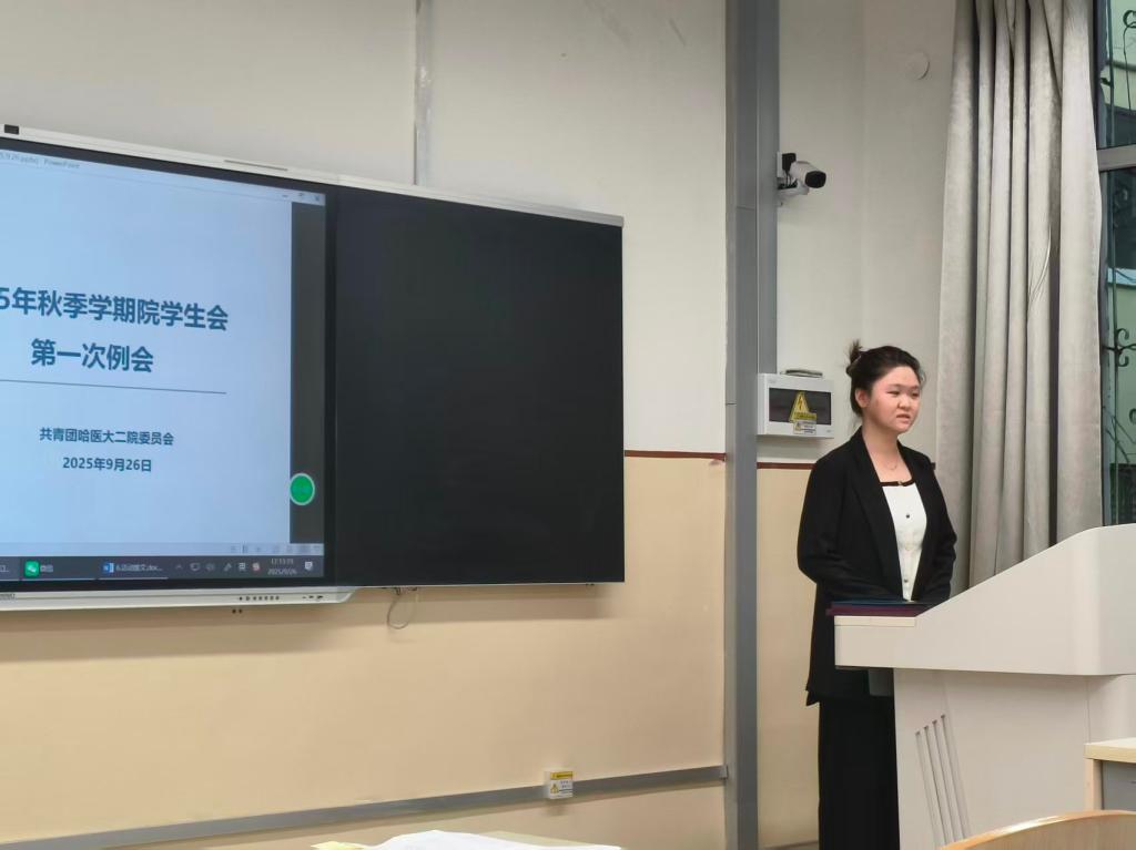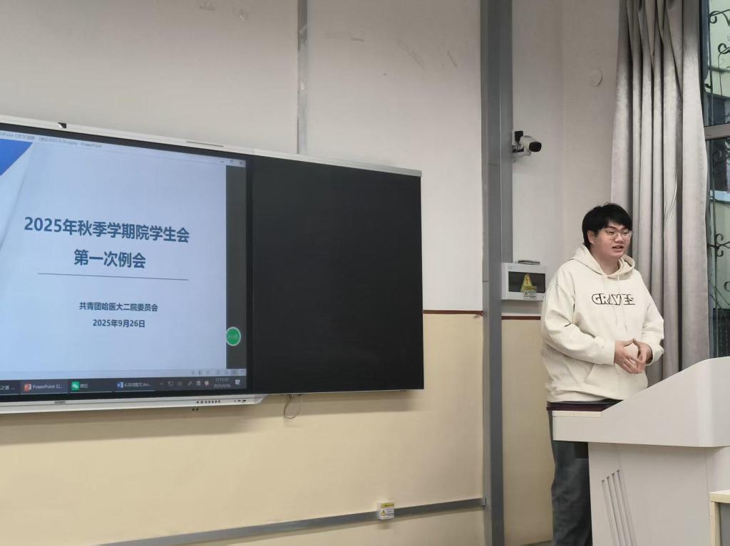 为扎实做好哈尔滨医科大学第二临床医学院学生会(以下简称院学生会)在新学期的各项工作,9月26日17时,在院团委的指导下,院学生会在二院教学楼5号教室召开2025年秋季第一次全体例会,学生会主席团以及各部门学生干部参加本次会议。