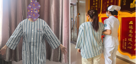 针对妇科围手术期患者护理过程中的关键痛点,妇产科四病房精准施策,着力破解难题:传统病号服设计存在缺陷,术后易对患者颈部产生压迫感,不仅影响吸氧、生命体征监测等护理操作的顺利进行,而且洗漱时极易浸湿衣领,实用性欠佳;患者术后隐私保护存在漏洞,女性用品缺乏专属收纳空间,导致就医体验大打折扣;传统病号服面料质地生硬,舒适度极低,加重患者术后身体的不适感,对康复进程造成不利影响;围手术期护理过于注重形式,缺乏以患者体感为核心的精细化服务,未能全面契合患者康复与舒适的实际需求。